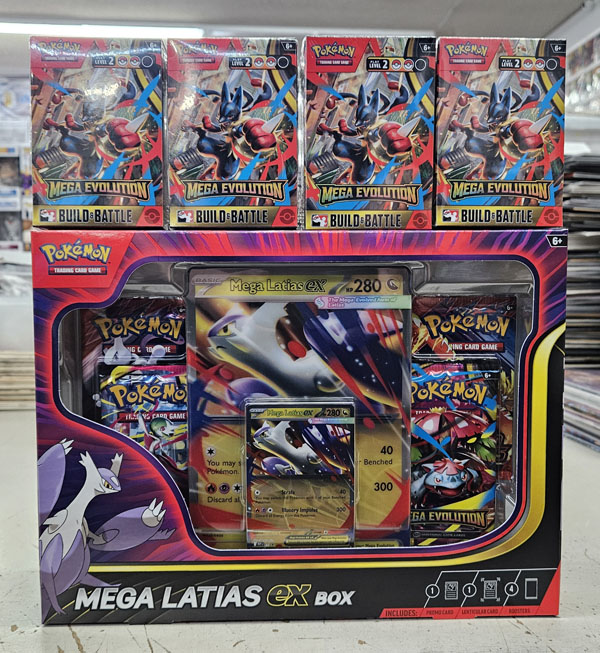 - Pokémon TCG: Mega Evolution – Build & Battle Box and Mega Latias EX Box.