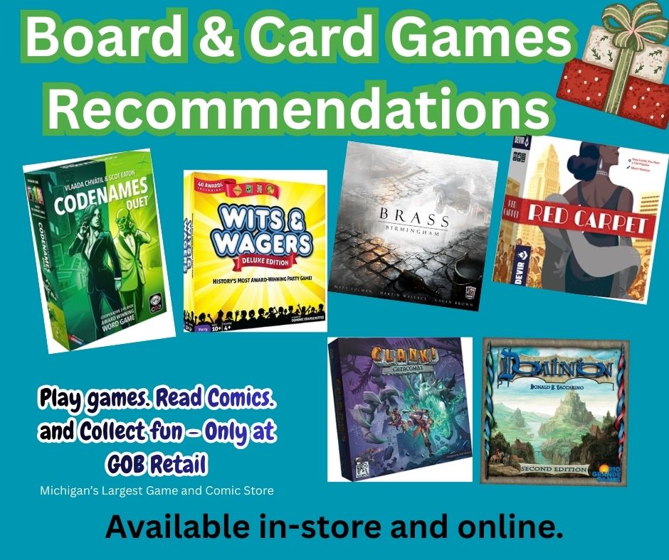 board games, card games, euro games, strategy games, dice games, party games, family games