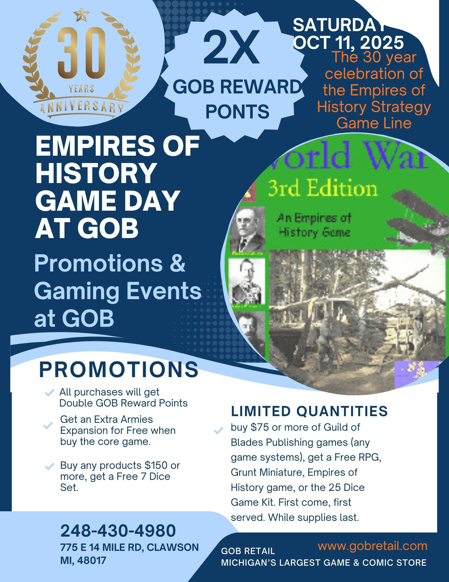 Empires of History Day is October 11 at GOB Retail. We’re celebrating with our sister company,