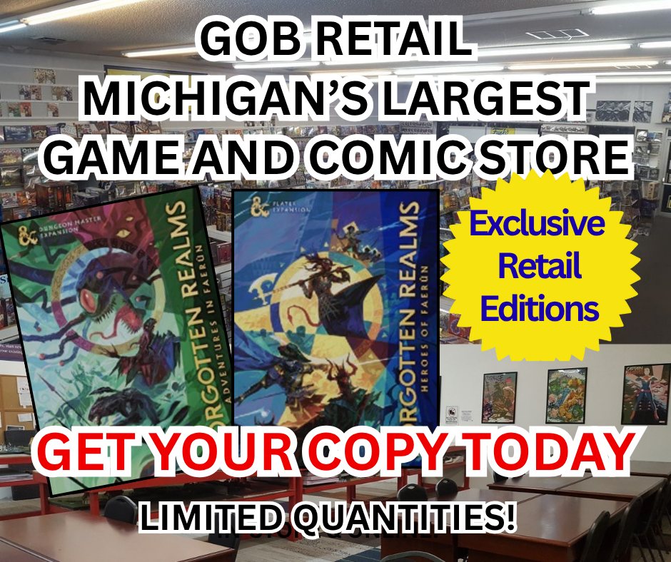 Play games. Read comics. Collect fun. Only at GOB Retail — Michigan’s Largest Game & Comic Store.